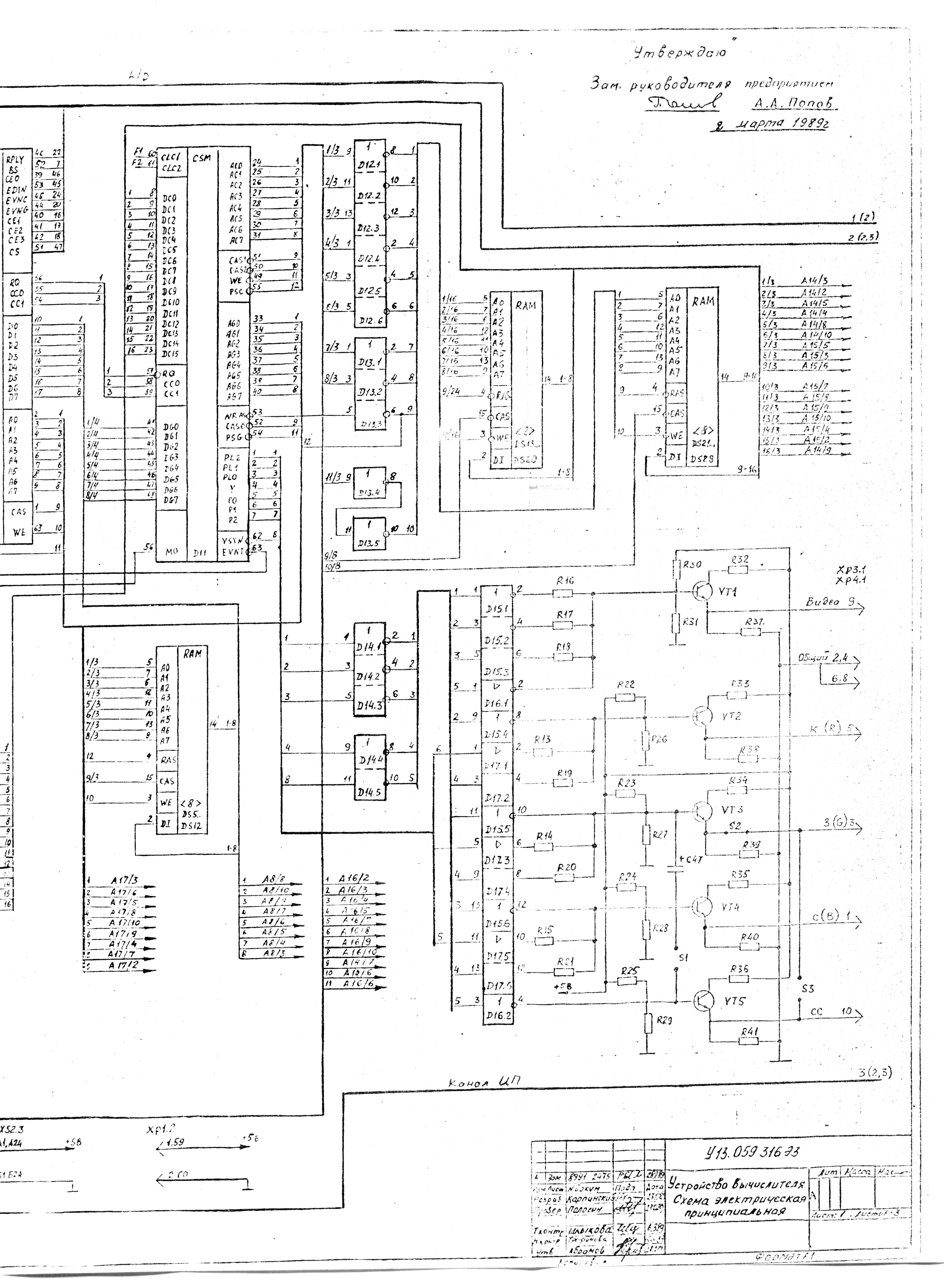Устройство вычислителя. Схема электрическая принципиальная.